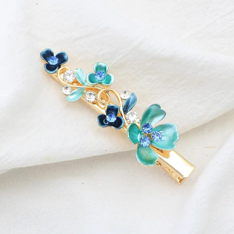 Elevate your hairdo with our exquisite Tropical Clip adorned with glistening rhinestones. This enchanting accessory effortlessly combines nature’s beauty with a touch of glamour. Whether you’re attending a wedding, a party, or just want to add a touch of elegance to your everyday look, this floral clip is the perfect choice. It’s sturdy alligator clip ensures a secure hold. Let this Tropical Clip become your go-to accessory.